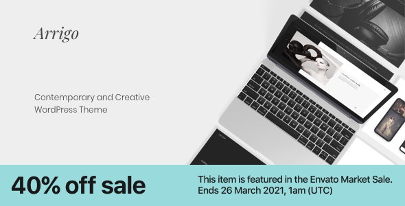 Satış Sayfası Arrigo – birinci sınıf bir yaratıcı portföy WordPress temasıdır. Modern minimalist yaklaşım ve içerik odaklı tasarımla hazırlanmıştır. Koyu veya açık renkli şablon setleriyle portföyünüzü modaya uygun, modern bir şekilde sergileyin. Arrigo ile yaratıcı rekabette öne çıkın!