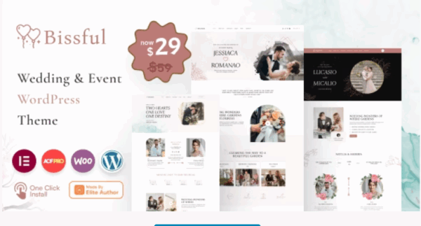 Satış Sayfası “Bissful” ile tanışın – düğün veya etkinlik planlama işleri için çarpıcı bir çevrimiçi varlık oluşturmak isteyen herkesin başvuracağı WordPress teması. Anında dikkat çekmek ve hedef kitlenizi daha ilk andan itibaren şaşırtmak için kullandığınız gizli malzeme gibidir.