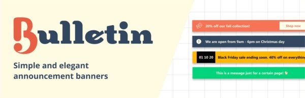 Satış Sayfası Bülteni Pro, web sitenize duyuru bannerları, satış teklifleri ve mağaza bildirimleri ekleyen hafif bir eklentidir.