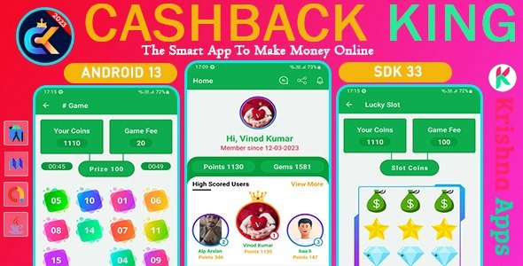 Satış Sayfası CashBack King, Android Studio’da Yapılmış, Gerçek Para Kazandıran Bir Android Uygulamasıdır. PHP Admin Paneliyle, PHP Admin Panelinden Uygulamanızı ve Web Sitenizi Yönetebilirsiniz. CashBack King Uygulamasında Kullanıcılar oyun oynayabilir, youtube videolarını izleyebilir, Casino Slot Bahisleri oynayabilir, kaydedilmemiş kişilerle WhatsApp’a mesaj gönderebilir ve ayrıca günlük motivasyon tekliflerini ücretsiz olarak alabilir. Bu uygulama aynı zamanda kazanılan paralara göre en iyi kullanıcıların liderlik tablosuna da sahiptir. Kullanıcılar daha fazla ücretsiz para kazanmak için benzersiz yönlendirme bağlantılarını paylaşabilir ve daha sonra bu paraları Elmaslara dönüştürebilir, ardından elmasları uygulamada gerçek paraya çevirebilirler.