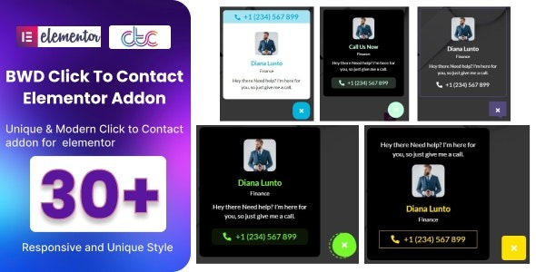Satış Sayfası “İletişim İçin Tıklayın”, herhangi bir kodlama bilgisi olmadan web sitenize çekici bir iletişim için tıklayın düğmesi ekleyen hafif bir Elementor tabanlı WordPress eklentisidir. Harika görünen 30’dan fazla benzersiz önceden ayarlanmış tasarım var. Kind bilgi için 100’den fazla tasarım çok yakında yer alacak.