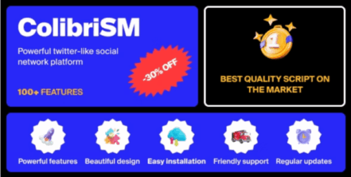 Satış Sayfası ColibriSM En İyi PHP Modern Sosyal Medya Paylaşım Platformu Bu, twitter, instagram gibi sosyal ağların bir benzeri olan medya içeriğini paylaşmak için kullanılan modern bir platformdur. ColibriSM, kendi sosyal platformunuzu oluşturmak için en iyi seçeneklerden biridir.