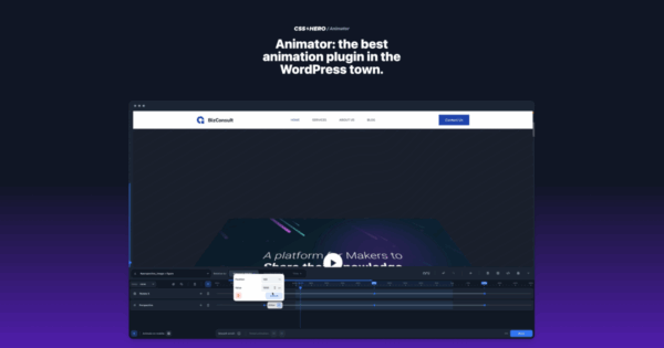 Satış Sayfası CSS Hero Animator: WordPress kasabasındaki en iyi animasyon eklentisi. Kolay ama güçlü bir işaretle ve tıkla arayüzüyle WordPress sitelerinize harika kaydırma ve zamana dayalı animasyon efektleri ekleyin.