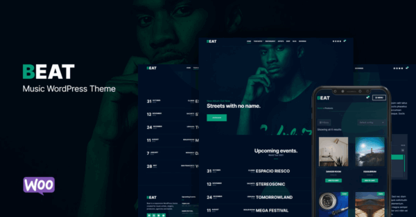 Beat, müzik sanatçılarının, şarkıcıların, yapımcıların, ajansların ve grupların tur tarihlerini, kayıtlarını, şarkılarını, videolarını sergilemeleri ve hayranlarıyla bağlantı kurmaları için oluşturulmuş duyarlı bir WordPress temasıdır.