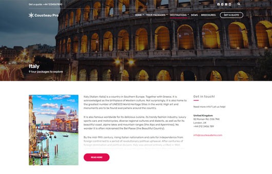 Satış Sayfası CSSIgniter Cousteau Pro, seyahat acenteleri, tur operatörleri ve maceracı seyahat blog yazarı için oluşturulmuş modern bir WordPress temasıdır. Cousteau Pro, çarpıcı ve profesyonel görünümlü seyahat ve macera web siteleri oluşturmak için ideal olan premium bir WordPress temasıdır. İlgi çekici ve görsel olarak çekici bir çevrimiçi varlık oluşturmayı kolaylaştıran gelişmiş özellikler ve işlevlerle doludur. Sezgisel sürükle ve bırak sayfa oluşturucusu ile çeşitli öğeleri yerlerine sürükleyip bırakarak kolayca özel sayfalar oluşturabilirsiniz. Tema aynı zamanda tamamen duyarlı olup, web sitenizin masaüstü bilgisayarlardan cep telefonlarına kadar her cihazda harika görünmesini sağlar. Genel olarak Cousteau Pro, kalabalığın arasından sıyrılmalarına yardımcı olacak büyüleyici bir seyahat web sitesi oluşturmak isteyen herkes için kapsamlı bir çözümdür.