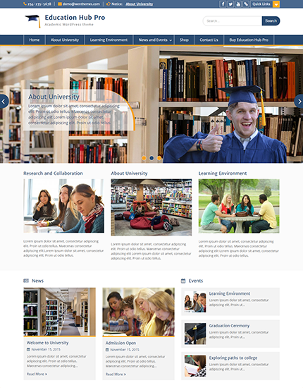 Satış Sayfası Education Hub Pro, basit ama benzersiz bir görünüm ve hisse sahip, temiz ve zarif bir WordPress eğitim temasıdır. Bu tema kolej, okul, üniversite ve diğer eğitim web siteleri için en uygunudur. Ancak bu temanın yalnızca eğitim amaçlı web sitelerine uygun olması zorunlu değildir. Bu aynı zamanda iş ve kurumsal web siteleri için kullanılabilecek kadar esnektir