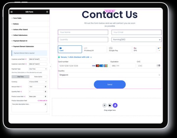 Satış Sayfası Elementor Stripe Ödeme eklentileri, elementor ile ödeme sayfanızı veya formunuzu oluşturmaya yönelik bir ödeme çözümüdür. Kredi Kartları, Alipay, Affirm, Bancontact, EPS, iDEAL, giropay, WeChat, PayPal, Google Pay, ApplePay, Afterpay, ACH, Klarna ve daha fazlası gibi her türlü ödeme yöntemiyle tek seferlik veya yinelenen sipariş formu, ödeme formu veya abonelik etkinliği oluşturmanın en kolay yoludur.
