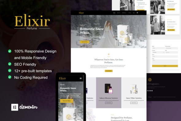 Satış Sayfası İksiri, parfüm üreticisi iş web sitesi için elementor şablon kitidir. Basit, zarif, modern tasarıma ve profesyonel düzen stiline sahip 12’den fazla önceden oluşturulmuş şablona sahiptir. Parfüm üreten firmaya kolaylıkla web sitesi yaptırabilirsiniz. Sadece sürükleyip bırakın, kodlamaya gerek yok.