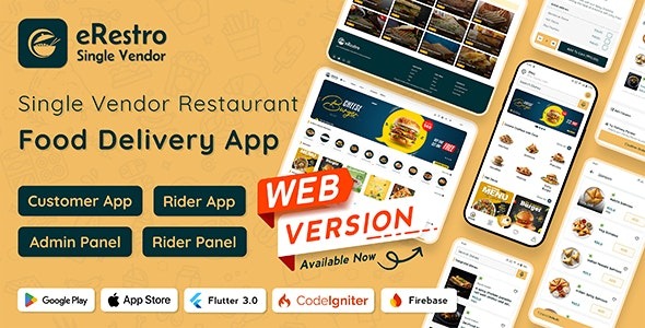 Satış Sayfası eRestro, kolaylaştırılmış restoran işletme yönetimi için CodeIgniter çerçevesi üzerine inşa edilmiş güçlü bir yönetici paneliyle, kullanıcı ve teslimat uygulamaları dahil olmak üzere tam özellikli bir Yemek Teslimat Restoranı yönetim sistemi sunar.