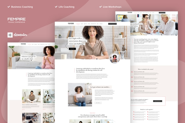 Satış Sayfası Fempire, kadın iş koçları için oluşturulmuş bir Elementor Şablon Kitidir. Her cihazda harika görünecek şekilde tasarlanmış koç için taze kadınsı web sitesi. Şablon piksel açısından mükemmel, iyi tasarlanmış ve web sitenizi bir kod satırına dokunmadan oluşturabilmenizi sağlıyor. Kadın antrenörler için özel olarak tasarlanmış ve uyarlanmış olan bu sitede, web sitenizi başarılı kılacak tüm temel özellikleri bulacaksınız.