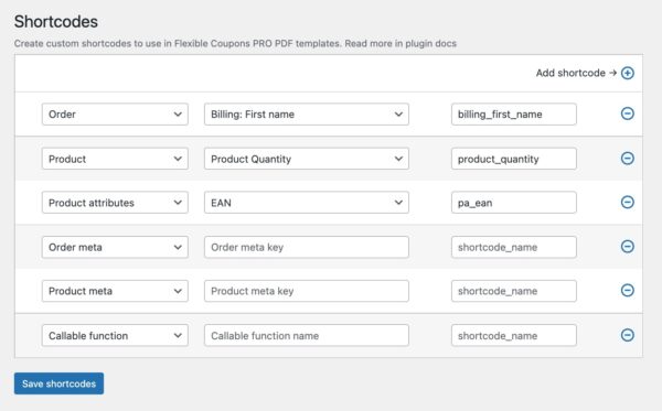 Satış Sayfası Özel Kısa Kodları, kısa kodlarınızı oluşturmanıza ve WooCommerce alanlarının değerlerini hediye kartlarınızın PDF şablonlarına aktarmanıza olanak tanıyan Esnek PDF Kuponları PRO eklentisine yönelik bir eklentidir.