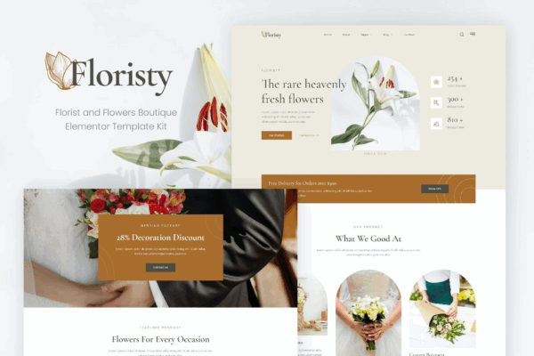Satış Sayfası Floristy – Çiçekçi ve Çiçek Butiği Elementor Şablon Seti, Çiçekçi ve Çiçek Butiği web sitesi için özel olarak hazırlanmıştır. Çiçekçi hizmetleri acentesi, buket tasarım firması, etkinlik çiçek dekoru ve tören dekorasyon şirketine odaklanmıştır. Floristy, %100 duyarlı düzen ile basit, modern ve temiz bir tasarıma sahiptir ve özelleştirilmesi çok kolaydır ve kodlamayı anlamaya gerek kalmadan herkes tarafından kullanılabilir.