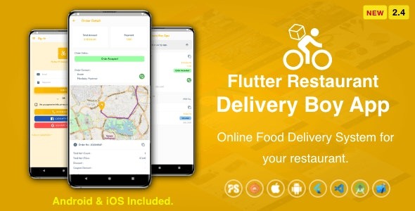 Flutter Restaurant Delivery Boy App for iOS and Android v2.4