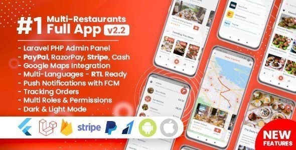Food Delivery Flutter (v2.7.0) + PHP Laravel Admin Panel