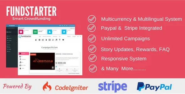 Satış Sayfası Fundstarter Akıllı Kitlesel Fonlama Çoklu Para Birimi ve Çok Dilli Sistem Paypal ve Stripe Entegre Sınırsız Kampanyalar Hikaye Güncellemeleri, Ödüller, SSS Duyarlı Sistem ve Daha Fazlası