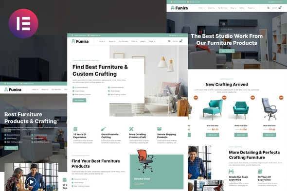 Satış Sayfası Funira – Mobilya Mağazası ve Özel El Sanatları Elementor Şablon Seti, temiz bir Tasarım için Elementor Pro Sürümüyle birlikte kullanılmak üzere tasarlanmış, Elementor sayfa oluşturucu WordPress eklentisine yönelik bir düzen koleksiyonudur. Çoğu temayla çalışır ve ücretsiz Hello Elementor temasıyla kullanım için optimize edilmiştir. funira-özel-zanaat-mobilya-elementor-şablon-kiti.19036