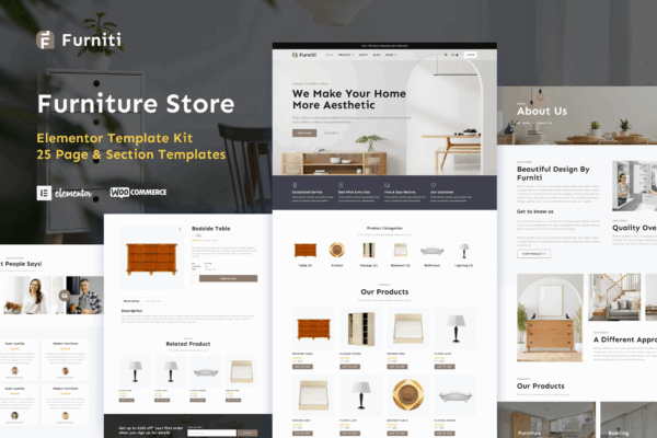 Satış Sayfası Furniti, mobilya, iç mekan ve ev dekorasyonu mağazanız için modern, temiz sunumlu bir çevrimiçi mağaza oluşturmak isteyen sizler için özel olarak tasarlanmış ve geliştirilmiş bir Elementor web sitesi şablon kitidir. Kolayca kısa sürede çevrimiçi varlık oluşturabilir ve çevrimiçi varlığınızı oluşturabilirsiniz.