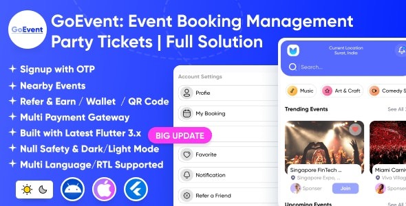 GoEvent (v1.2) Event Booking Management | Event Planner | Ticket Booking | Flutter Full Solution App