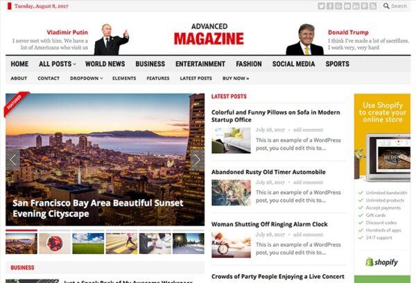 Gelişmiş Dergisi, kolayca yazı yazmanıza olanak tanıyan bir WordPress gazete temasıdır. Advanced Magazine teması bir haber, gazete, dergi, yayın veya inceleme sitesi için mükemmeldir. Aklımızdaki en iyi SEO uygulamalarını kullanır. Hızlı, zarif ve kullanımı çok kolaydır. Ayrıca Advanced Magazine duyarlı Google Ads ve AdSense’i de destekler.