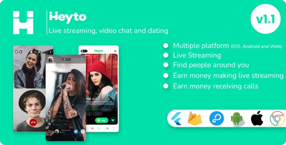 Heyto v1.0 Live Streaming (iOS, Android and Web) Paid Video calls and Dating, Payouts with Admin Panel
