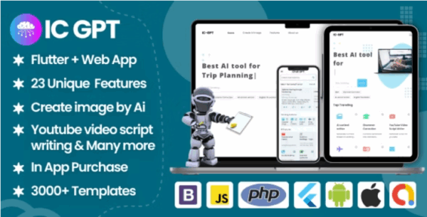 ICGPT 13 January 2024 – GPT AI Writing Assistant, Image Generator & Content Creator Flutter App + WEB version + Admin