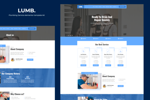 Satış Sayfası Lumb, WordPress için Elementor Sayfa Oluşturucu eklentisini kullanarak işletmeniz için hızlı ve kolay bir şekilde web siteleri oluşturmaya yönelik bir Elementor Şablon Kitidir. Bu kit, ücretsiz Hello Elementor temasıyla kullanılmak üzere optimize edilmiştir ancak Elementor’u destekleyen çoğu temayla birlikte kullanılabilir. Lumb, sıhhi tesisat hizmeti şirketi için duyarlı, benzersiz bir tasarım ve modern tasarımla tasarlanmış bir şablon setidir.