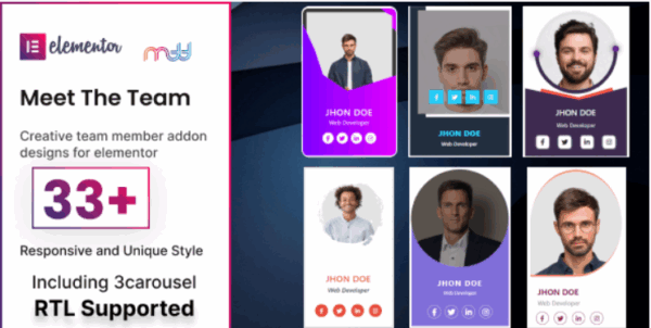 Satış Sayfası Ekiple Tanışın, Elementor için benzersiz tasarımlı Ekip Üyesi Eklentisidir. Harika görünen 3 atlıkarınca stili de dahil olmak üzere 33’ten fazla farklı stil var. Son derece özelleştirilebilir; herhangi bir rengi, sosyal simgeyi ve öğe hizalamasını değiştirebilirsiniz. Bu eklenti artık RTL desteklidir. Bilgi için 100’den fazla hazır tasarım çok yakında eklenecektir.