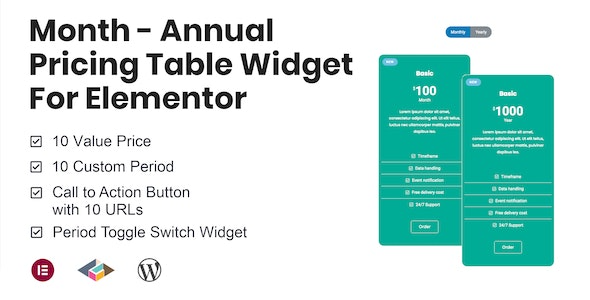 Month v1.2.3 Annual Pricing Table Widget For Elementor