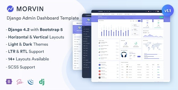 Satış Sayfası Morvin – Bootstrap 5 ve Django kullanılarak oluşturulmuş temiz ve zarif bir yönetici şablonu. Yalnızca SCSS kullanılarak bakımı yapılan 6’dan fazla alternatif düzen ve 3 mod (Koyu, Açık ve RTL) içerir. Birkaç kod satırını değiştirerek düzenler veya modlar arasında kolayca geçiş yapabilirsiniz. Morvin – Django, küçük ve büyük projeler inşa etmenin yanı sıra mevcut bir projenin tasarımını ayarlamak için kullanılıyor. Zarif, becerikli ve en iyi kullanıcı deneyimini sağladığı için inanılmaz derecede hızlı ve basittir.
