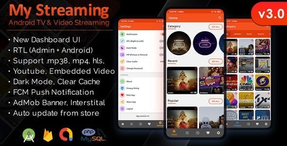 My Streaming (v1.5) Android App with Admin Panel (Android 14 Support)