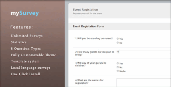 Satış Sayfası mySurvey, anket oluşturma ve çalıştırma sürecini basitleştirmek için tasarlanmış güçlü bir PHP ve AJAX sistemidir. mySurvey ile sorularınızı, cevaplarınızı, temalarınızı ve anketlerinizi hızlı ve kolay bir şekilde özelleştirebilirsiniz. Sistem bir anketi yayınlamak için üç basit adımı izler: bir anket oluşturun, soruları ve yanıtları ekleyin ve yayınlayın.