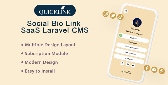Satış Sayfası QuickBioLink, yaratıcıların, etkileyicilerin ve işletmelerin ihtiyaçlarını karşılamak üzere tasarlanmış, Laravel CMS çerçevesi kullanılarak geliştirilmiş kapsamlı bir SaaS platformudur. Kullanıcılara, hedef kitlelerini birden fazla çevrimiçi hedefe sorunsuz bir şekilde bağlayan, etkileşimi ve dönüşümleri artıran biyo bağlantı sayfaları oluşturma ve yönetme yetkisi verir.