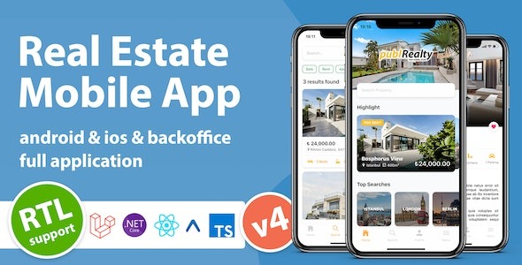 Real Estate Mobile App with Admin Panel v6.0 React Native & PHP Laravel 10.0