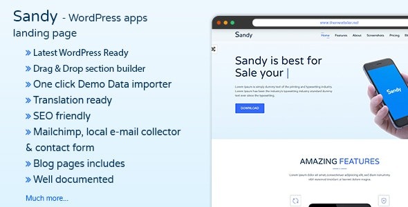 Satış Sayfası ‘Sandy – WordPress Uygulamaları Açılış Sayfası Teması’, Bootstrap çerçevesiyle yapılmış profesyonel bir WordPress açılış sayfasıdır. Tüm cihazlara duyarlıdır ve sade bir görünüm ve his, şık ve modern trend ile tasarlanmıştır. Temel olarak uygulama tanıtımı için tasarlanmıştır ancak mobil oyun vitrini veya herhangi bir uygulama web sitesi vitrini için de uygun olacaktır. Tonlarca bölüm, özelleştirme seçeneği ve birden fazla amaca yönelik özellikler içeren benzersiz bir düzen ile birlikte gelir.