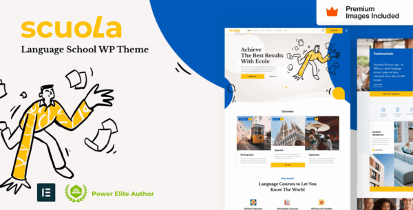 Satış Sayfası Scuola WordPress Elementor Teması Dil Okulları, Dil Kursları, Kolejler ve diğer Öğrenme ve Eğitim web siteleri için idealdir. Tam bir Kurs Yönetim Sistemi, Kurs Rezervasyonu ve WooCommerce aracılığıyla yapılan ödemeleri içerir. Sıfır programlama becerisine sahip kullanıcılar ve ileri düzey geliştiriciler bunu oldukça iyi kullanabilirler.