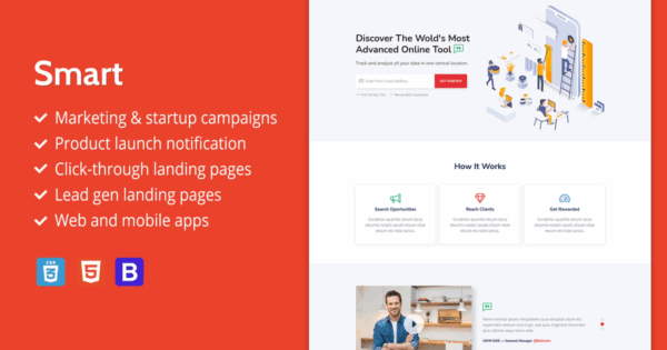 Akıllı, ihtiyaçlarınıza göre özelleştirmesi çok kolay, temiz ve modern, yüksek dönüşüm sağlayan bir açılış sayfası şablonudur. Bu açılış sayfası şablonu her türlü pazarlama ve başlangıç web sitesini tanıtmak için kullanılabilir. Kurulumu hızlı ve kolaydır.