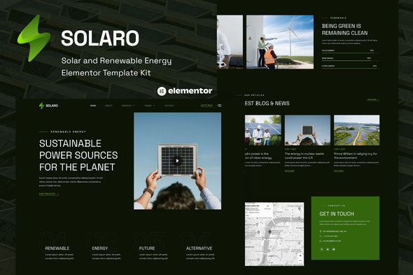 Solaro – Solar & Renewable Energy Elementor Template Kit