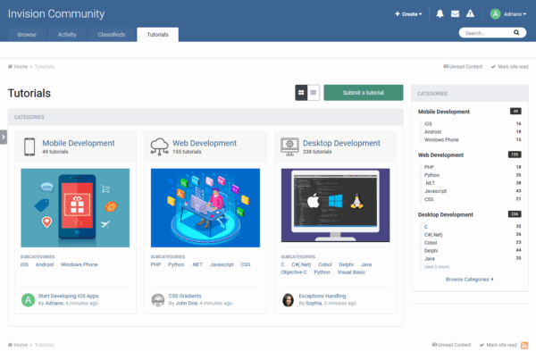 IPS Topluluğunuz için tam özellikli bir Öğreticiler/Makale sistemi. Satış Sayfası Bu uygulamanın bazı özelliklerinin kısa bir özeti: IPS 4.2 ile tam uyumlu (Kulüpler, Önerilen Yorumlar, İçerik Mesajı, vb.) Sınırsız makale kategorisi ve sınırsız ebeveyn-çocuk ilişkileri derinliği Kategori Simgeleri Yorum sistemini veya destek konularını veya her ikisini birden kullanma yeteneği Kategoriyi göstermek, makaleleri okumak, makaleleri göndermek, yorum eklemek ve onay kuyruklarından kaçınmak için kategori başına izinler Kategori başına kullanılabilecek Ekstra Alanlar Hızlı düzenleme (ajax) kategori görünümünde öğreticinin başlığı Kategori görünümünde eğitim bağlantısının üzerine geldiğinizde eğitim içeriğini önizleyin Belirli eylemlere ilişkin grup izinleri Reklam sistemi ile entegrasyon Toplu Posta sistemi ile entegrasyon ACP Canlı Arama ile entegrasyon (Eğitimler kategorileri) Etiket sistemi ile entegrasyon Rapor sistemi ile entegrasyon Arama sistemi ile entegrasyon Makaleleri paylaşmak, indirmek veya yazdırmak için Paylaşım Bağlantıları ile entegrasyon Site haritanıza öğreticiler eklemek için Site Haritası sistemi ile entegrasyon Makaleler ve yorumlar üzerinde moderatör eylemleri Tüm eğitimlerin RSS beslemelerini oluşturma yeteneği Eğitimlere ve yorumlara dosya ekleme yeteneği Bir forum gönderisini hızlı bir şekilde yeni bir eğitime dönüştürme yeteneği Bir eğitimi bir kategoriden diğerine veya aynı kategoriye kopyalama yeteneği Eğitimler ve kategoriler için kolay URL’ler Eğitimler için itibar puanı verme özelliği Eğitimleri derecelendirme yeteneği Güncelleme güncellemeleri hakkında bildirim almak için kategorileri ve eğitimleri takip etme yeteneği Mevcut eğitimlere konu oluşturmak, konuların eğitimlerini oluşturmak ve şablonu değiştirdiyseniz destek konularının metnini yeniden oluşturmak için araçlar Öğretici ayarları. Ve çok, çok daha fazlası!