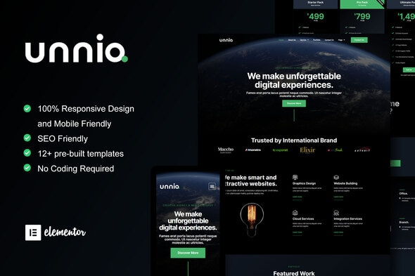 Unniq – Dark Digital Creative Agency Elementor Template Kit