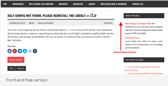 Satış Sayfası Dikey Haber Kaydırıcısı, WordPress sitesi için dikey kaydırmalı haberleri görüntülemek için bir eklentidir. Yönetici herhangi bir sayıda haberi yönetebilir. Yönetici haberleri ekleyebilir, düzenleyebilir ve silebilir. Basit ve kolay haber kaydırma çubuğu. Yönetici, metni haber içeren veya yalnızca haber başlığını görüntüleme seçeneğine sahip olabilir. Yönetici haberlere özel bir bağlantı ekleyebilir. Pro sürümünde kategori bazlı haberler ve küçük resim desteği, haber sırası vb. gibi daha fazla özellik bulunur.