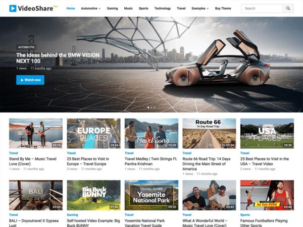 Satış Sayfası VideoShare Pro, çeşitli kaynaklardan video yayınlamanıza olanak tanıyan, duyarlı ve mobil uyumlu bir WordPress video temasıdır. Eğer bir video paylaşım sitesi kuracaksanız bu tema tam size göre.