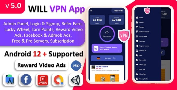 WILL VPN App (v9.0) VPN App With Admin Panel | Secure VPN & Fast VPN | Refer & Earn | Reward Lucky Wheel