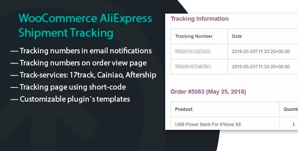 Satış Sayfası Bu eklenti, WooCommerce siparişlerine takip numaraları eklemek, bunları özel bir takip hizmeti kullanarak takip etmek (AliExpress tedarikçilerinden aldığınız takip kodları hakkında ayrıntılı bilgi almak) ve bu verileri müşterilerinize e-postayla göndermek için işlevlerden yararlanır. Lütfen unutmayın: AliExpress’ten takip verilerini otomatik olarak almak istiyorsanız bu eklentiyi Ali2Woo eklentisi ile birlikte kullanmanız gerekir.