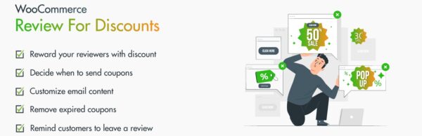 İndirim için Satış Sayfası WooCommerce İncelemesi, çevrimiçi mağaza sahiplerinin, ürünlerinde indirimler sunarak müşteri incelemelerini teşvik etmesine olanak tanır. Müşteri yorum gönderdiğinde, bir sonraki satın alma işleminde uygulayabileceği benzersiz bir indirim kodu alacaktır. Bu özellik yalnızca müşterileri geri bildirim bırakmaya teşvik etmekle kalmaz, aynı zamanda müşteri tutmayı ve tekrarlanan işleri de artırır. Mağaza sahipleri indirim tutarını, minimum satın alma gereksinimini ve indirim kodunun son kullanma tarihini özelleştirebilir. İndirim için WooCommerce İncelemesinin kurulumu ve kullanımı kolaydır ve diğer WooCommerce uzantılarıyla sorunsuz bir şekilde bütünleşir.