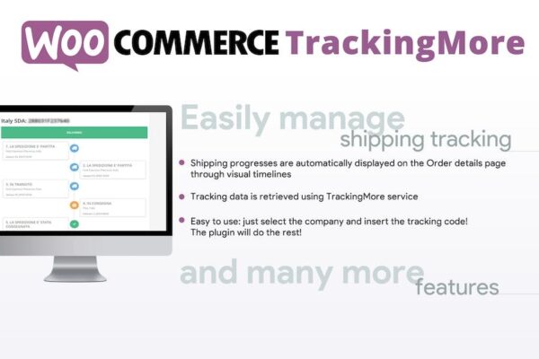 Satış Sayfası WooCommerce TrackingMore, müşterinizin Sipariş ayrıntıları sayfasında görüntülenen zaman çizelgeleri aracılığıyla gönderileri takip etmesine olanak tanır! Kullanımı basittir: WooCommerce TrackingMore menüsü aracılığıyla TrackingMore API Anahtarını ekleyin (bunu oluşturmak için bir bağlantı bulacaksınız) Gönderileri takip etmek için kullanacağınız şirketleri seçin Yönetici sipariş ayrıntıları sayfasında takip bilgilerini girin İşte bu kadar! Eklenti sizi otomatik olarak takip durumu hakkında güncel tutacak ve siparişle ilişkili her takip kodu için ön uç sipariş ayrıntıları sayfasında durum zaman çizelgelerini otomatik olarak gösterecektir!